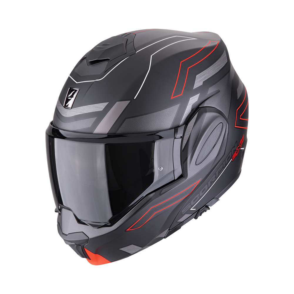 Super viegla Carbona ķivere. Revolucionārā sistēma AIRFIT/Helmet Pump piepumpē vaigu polsterus ar gaisu, kam pateicoties ķivere ne tikai ideāli pielāgojas Jūsu galvas formai, bet ir arī ir ļoti klusa, ELLIP-TEC™sistēma, kurai pateicoties stikls tiks nomainīts ātri, viegli un ērti PINLOCK® Max VISION 3D dubultais pretsvīšanas stikls, novērš stikla svīšanu jebkādos laikapstākļos lietū, miglā un zemā temperatūrā. KwikWick ® iekšējo ķiveres polsteru materiāls izgatavots no elpojoša, patīkami mīksta, viegli mazgājama un antibakteriāla materiāla. Vēsā laikā materiāls sildīs, karstā laikā atvēsinās. Scorpion īpašā ventilāciju sistēma ļauj katram lietotājam tās noregulēt pēc savām velmēm. Ķiveres priekšējais stikls pēc sistēmas EverClear izgatavots no speciālas plastikas ar izcilu tehnoloģiju No-Fog, kas pasargātā stiklu no skrāpējumiem. FACESHIELD LOCK slēdzis priekšējā stikla drošai fiksācijai. SpeedView integrētā saulesbrille ļauj saglabāt drošu un komfortablu braukšanu arī saulainā laikā. DD Ring visdrošākā ķiveres aizvēršanas sistēma. Emergency release system speciāli elementi ļauj droši, viegli un ātri avārijas situācijā noņemt braucēja ķiveri sniedzot pirmo palīdzību. Kwikfit™ sistēma paredzēta ērtai briļļu ievilkšanai.